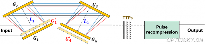 研究团队提出一种基于非对称四光栅的新型非线性压缩方案,通过引入空间色散抑制在非线性压缩中产生的小尺寸自聚焦现象。理论数值模拟结果证明了新型后压缩方案对于空间小尺度自聚焦效应的抑制作用。这一研究成果不仅为脉冲后压缩技术的发展和实际应用提供了重要的技术支持,也将有助于未来超高功率激光技术的发展。